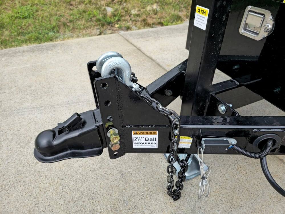 Adjustable Ram Jack & Safety Chains: 7,000 lb. top-wind jack, fully wired LED Optronics lights, safety chains, and 2-5/16″ adjustable Ram coupler.