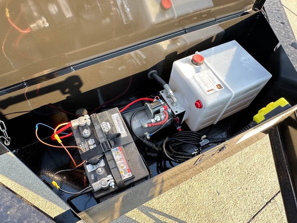 Hydraulic Pump Control Box on Tongue: The user-friendly hydraulic pump control box is conveniently located on the tongue, offering easy access and operation for quick adjustments.